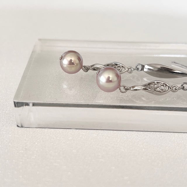 天然色ラベンダーピンクの淡水パールを使った、気品溢れるピアスです。甘すぎない大人のオシャレをお楽しみいただけます。