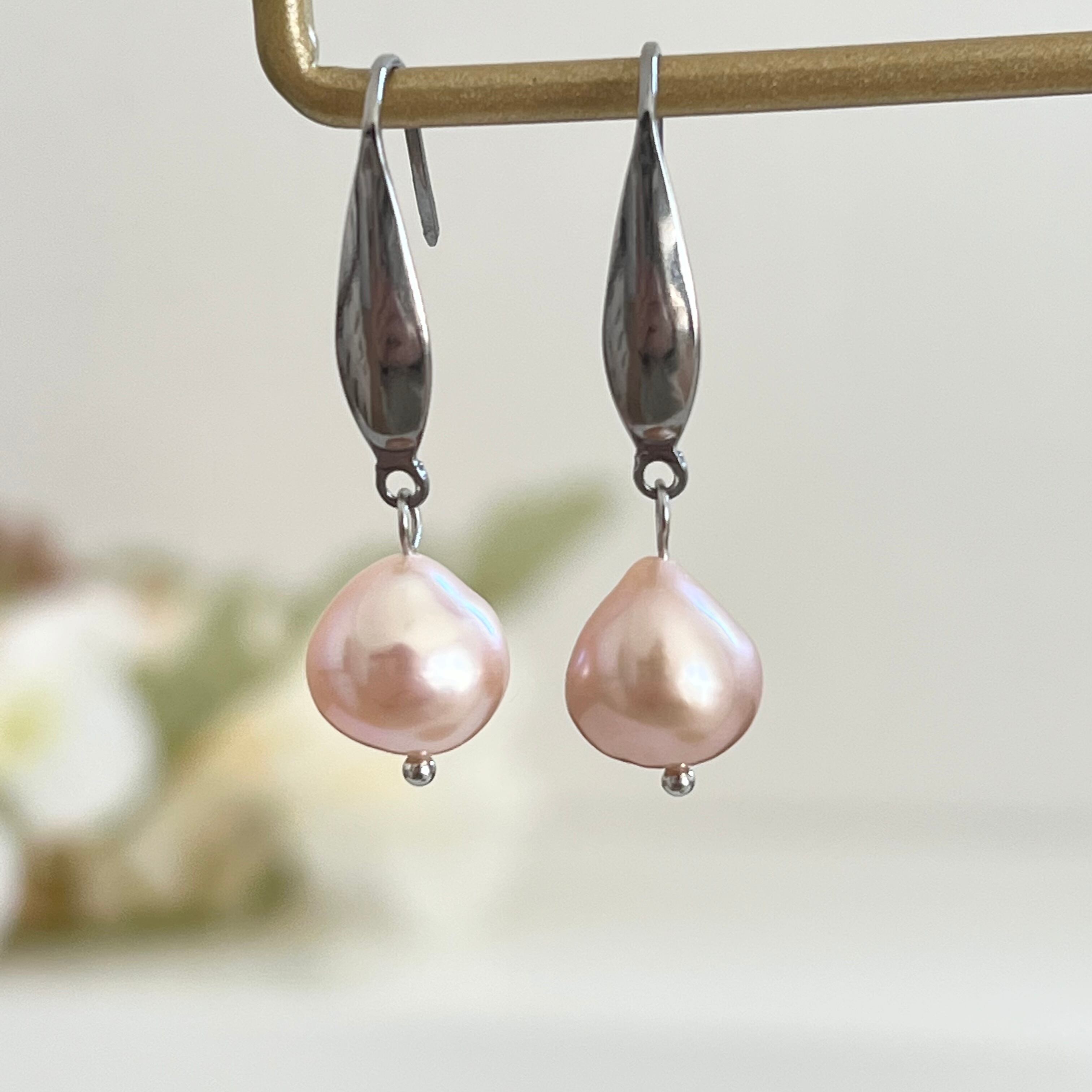 【20301】ピーチピンクの雫・淡水パール ピアス *・*・* 〈母の日 ギフト サージカルステンレス 金属アレルギー対応 オフィスカジュアル 結婚式〉 | Journal perle (ジュルナルパール) 淡水パール ピアス専門店