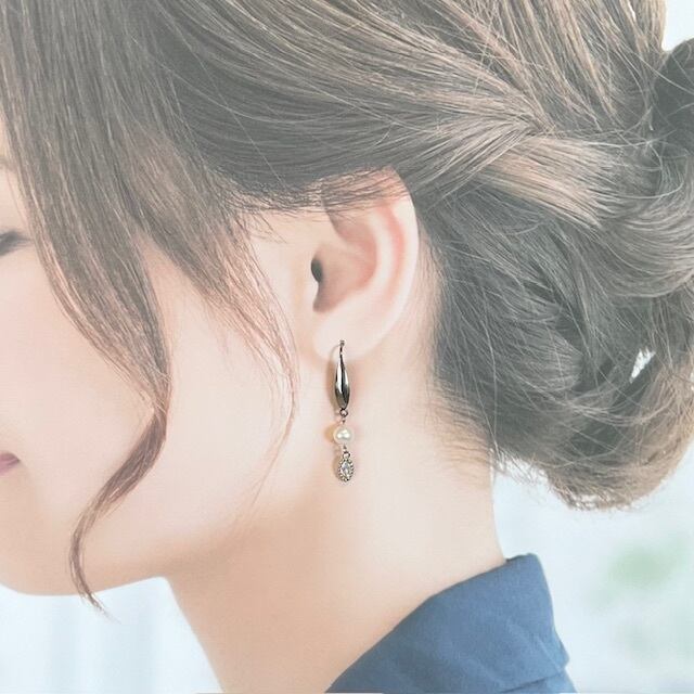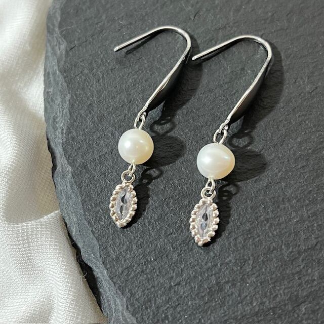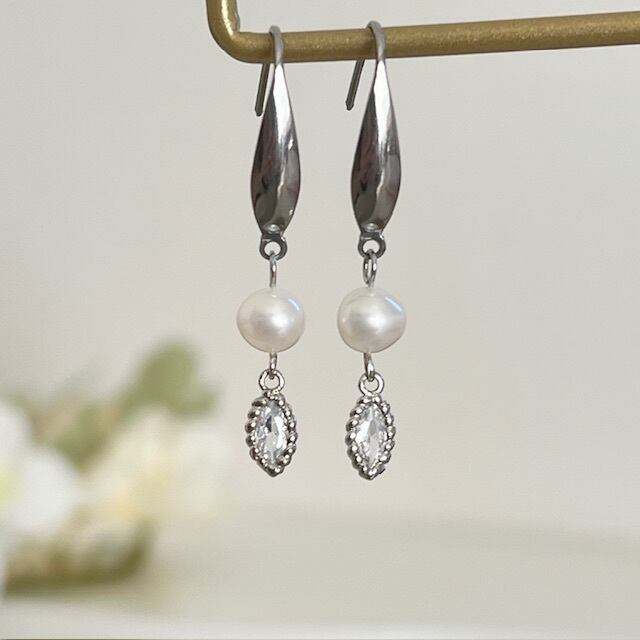 ホワイト淡水パールとキュービックジルコニアを使った、上品な大人のピアスです。