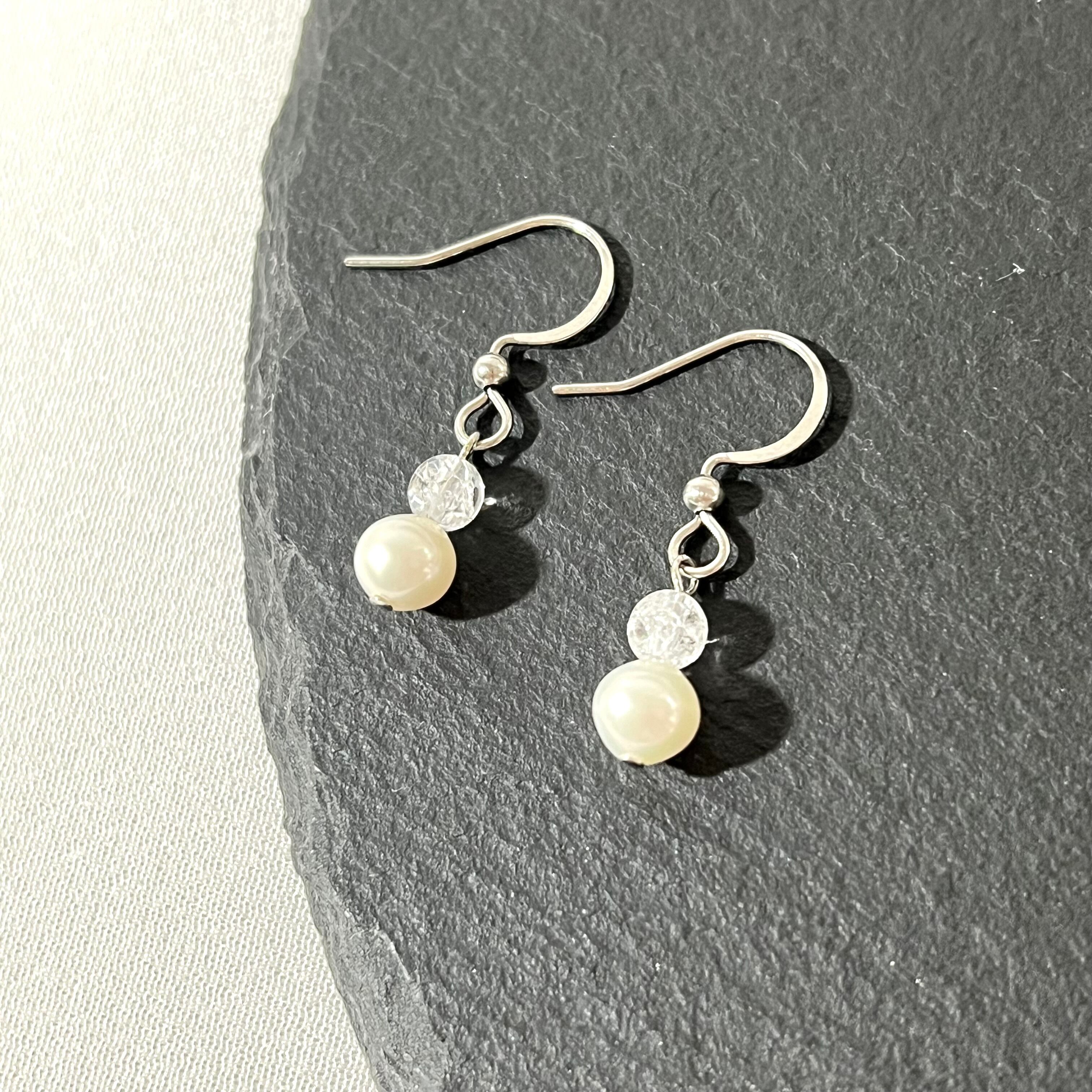 【20364】小さな淡水パール&クラッククォーツ ピアス *・*・* 〈真珠 水晶 天然石 サージカルステンレス フォーマル オフィスカジュアル 仕事 ウェディング 結婚式〉 | Journal perle (ジュルナルパール) 淡水パール ピアス専門店