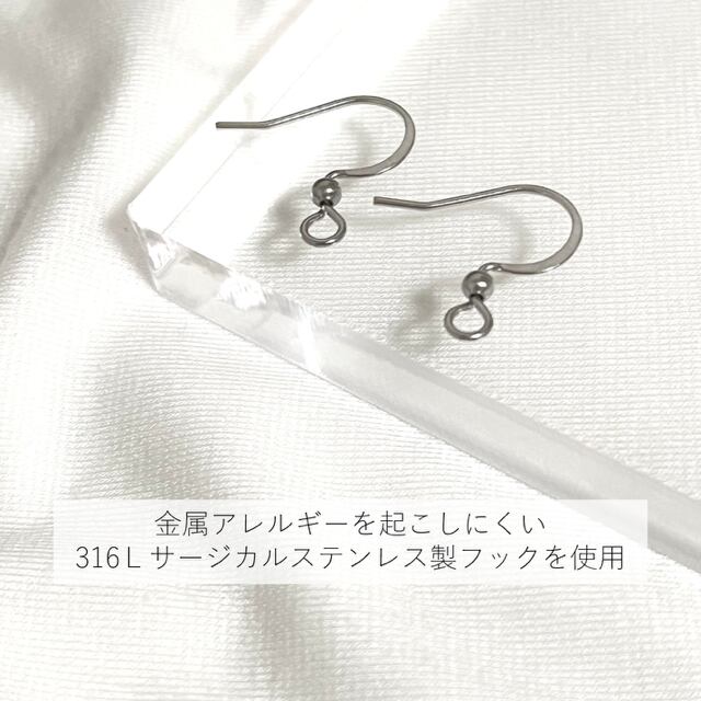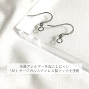 ●フックは316Lサージカルステンレスを使用。(メッキ加工を施していないそのままの材質で、金属アレルギーを起こしにくいです。)