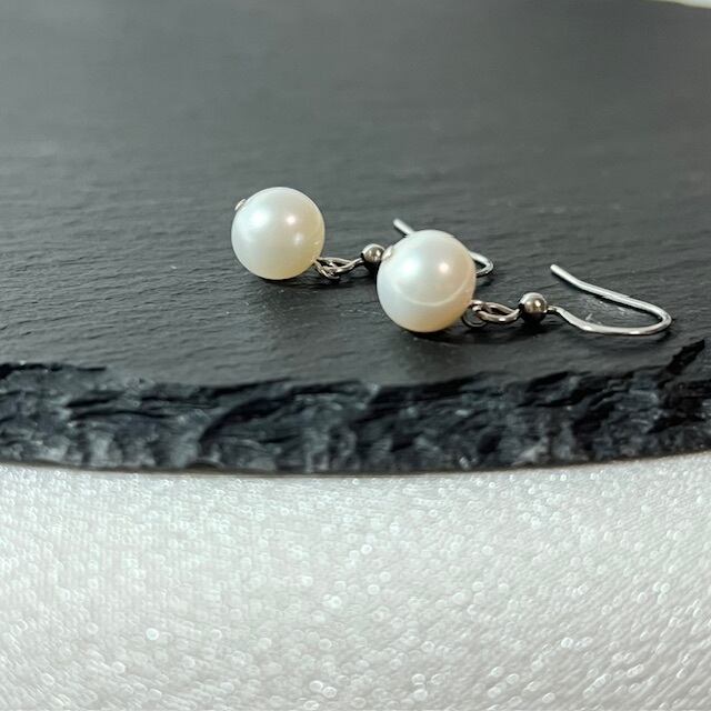ホワイト淡水パールを使った上品なピアスです。